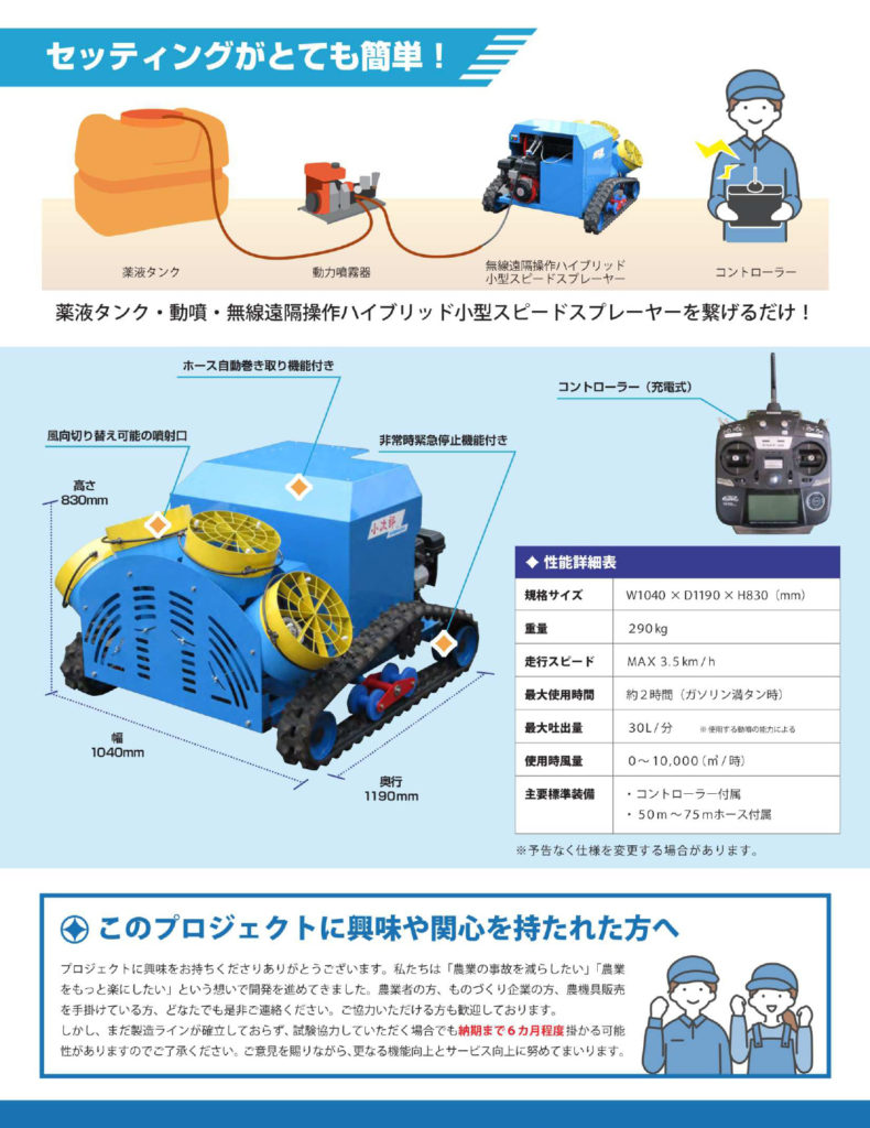 無線遠隔操作ハイブリット小型スピードスプレーヤー小次郎